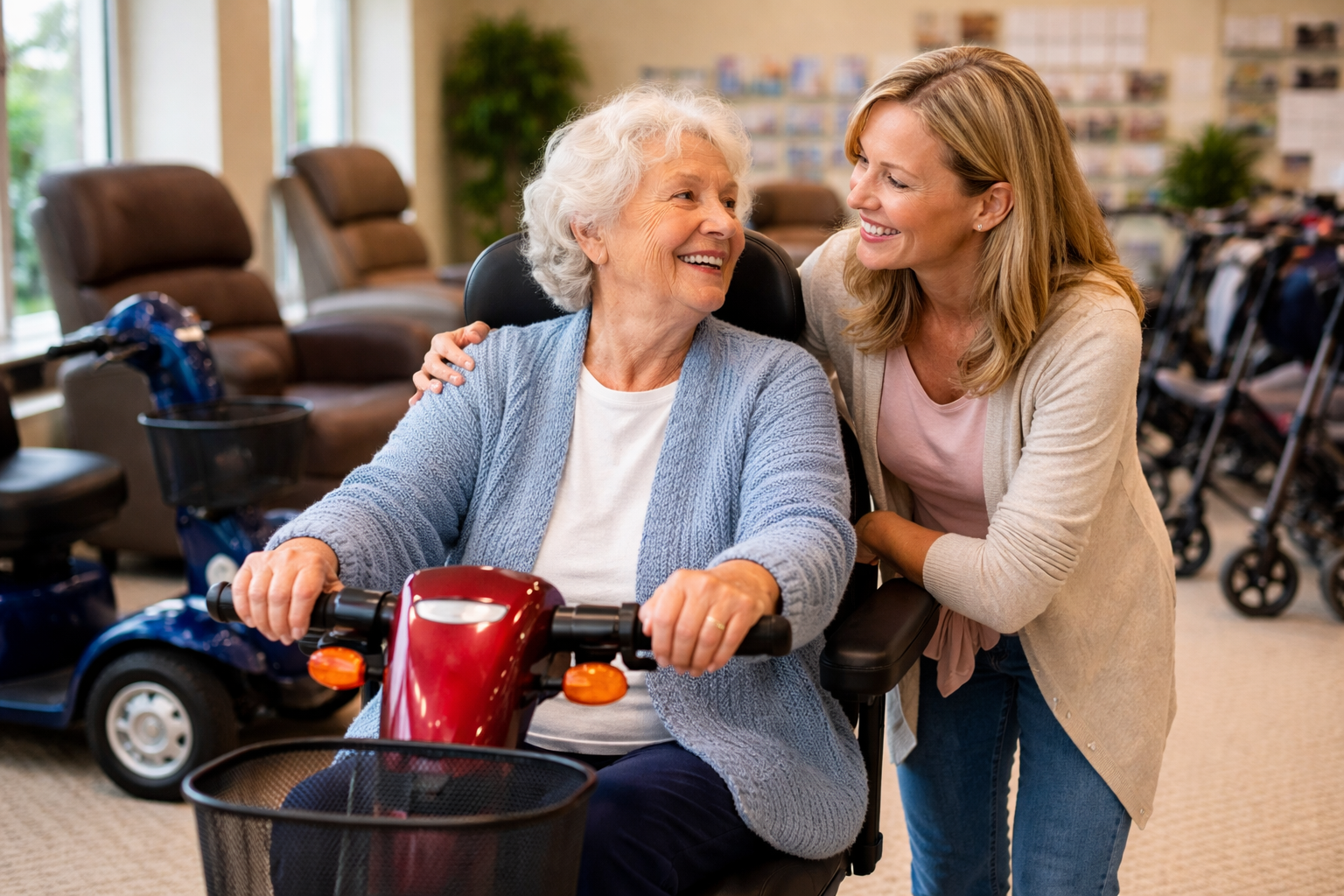 At Rocking Mobility, we explain this directly: we do not take insurance because insurance often does not pay for the equipment that is actually right for the customer or the equipment they truly want. Too often, the decision is shaped by restrictions and paperwork rather than by what will work best in the person’s daily life. For assisted living and long-term care residents, that matters even more. The best solution may depend on room layout, transfer ability, comfort preferences, maneuverability, or the need for a specific style of chair, scooter, recliner, or support product. Families often want the freedom to choose what makes sense rather than waiting on a narrow process that may still lead to the wrong fit.